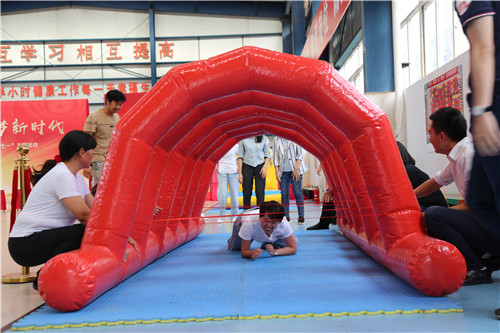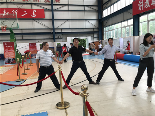 黨課后,參會(huì)人員來到公司籃球館參與主題黨建活動(dòng)?;顒?dòng)根據(jù)長(zhǎng)征路線的重要地點(diǎn)和發(fā)生的重要事件,設(shè)置了“翻雪山”、“過草地”、“飛奪瀘定橋”、“遵義會(huì)議”“四渡赤水”、“激戰(zhàn)臘子口”、“三軍會(huì)師”等七個(gè)游戲,參加活動(dòng)的人員隨機(jī)組建成“薪火相傳”、“錚錚鐵骨”、“眾志成城”、“百煉成鋼”、“勇往直前”五支隊(duì)伍參與活動(dòng)。