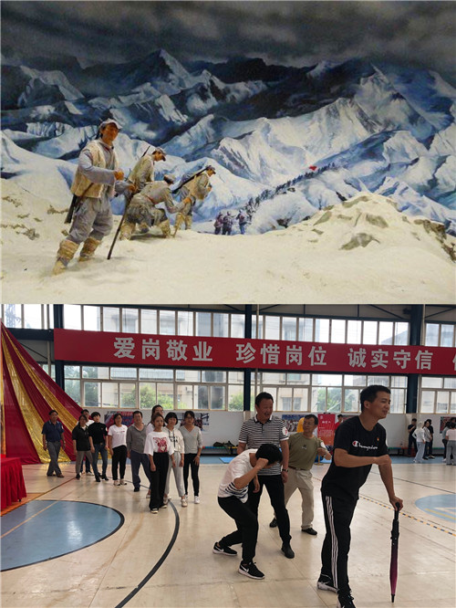 黨課后,參會人員來到公司籃球館參與主題黨建活動?;顒痈鶕?jù)長征路線的重要地點(diǎn)和發(fā)生的重要事件,設(shè)置了“翻雪山”、“過草地”、“飛奪瀘定橋”、“遵義會議”“四渡赤水”、“激戰(zhàn)臘子口”、“三軍會師”等七個游戲,參加活動的人員隨機(jī)組建成“薪火相傳”、“錚錚鐵骨”、“眾志成城”、“百煉成鋼”、“勇往直前”五支隊(duì)伍參與活動。