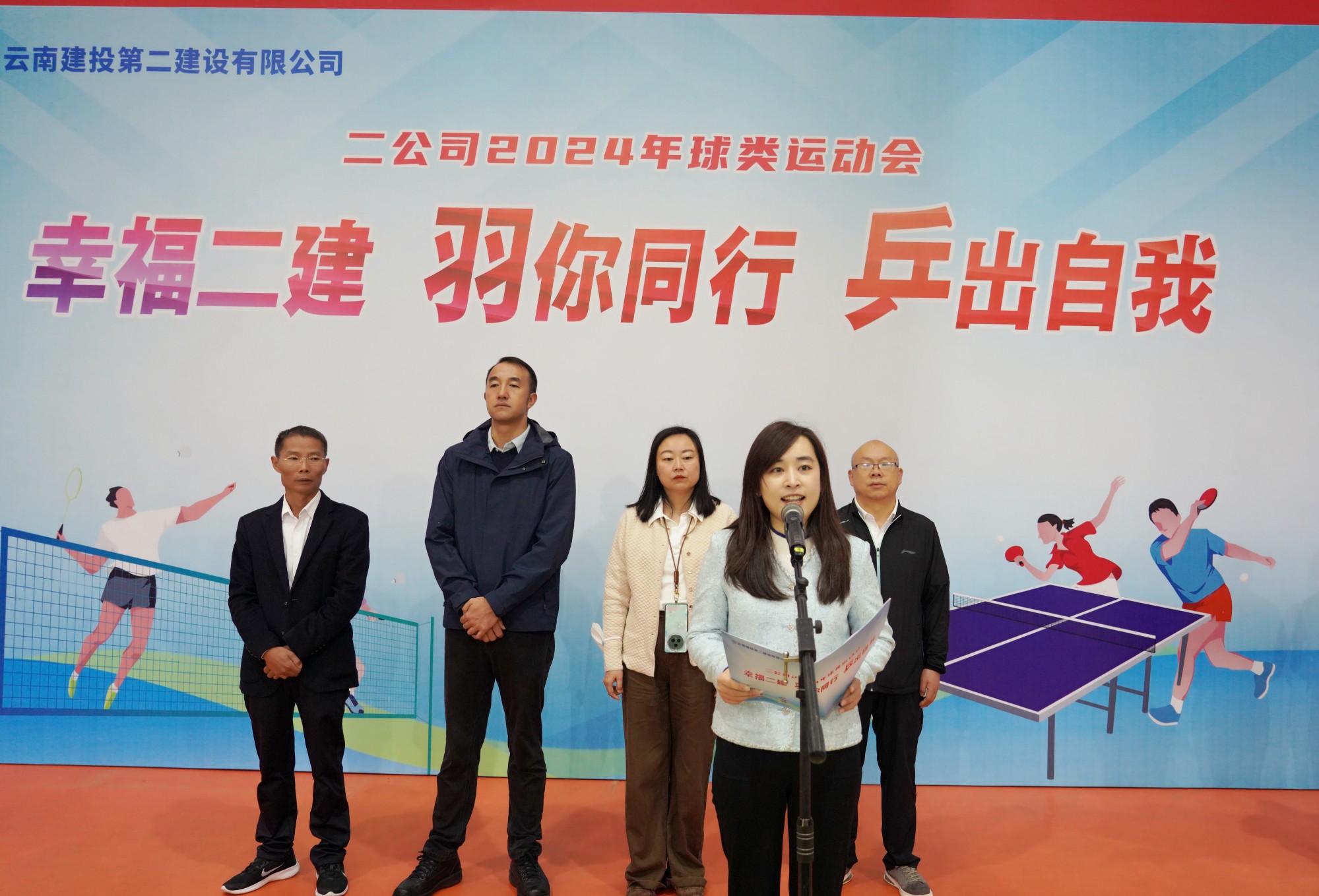 李方圓在致開幕詞時指出:今年是中華人民共和國成立75周年。值此之際,公司工會舉辦球類運動會,不僅是一場體育競技的盛會,更是二建人精神風(fēng)貌的一次集中展示。一直以來,公司始終把廣大干部職工對美好生活的向往作為兩級班子的奮斗目標(biāo)。公司工會將一如既往地組織開展各類文體活動,搭建交流平臺、增強職工提質(zhì),營造積極向上、和諧共進(jìn)的企業(yè)文化氛圍,為公司高質(zhì)量發(fā)展注入新的活力和動力。希望比賽過程中全體裁判員嚴(yán)守規(guī)程、認(rèn)真負(fù)責(zé)、公正裁決;希望全體工作人員主動服務(wù)、耐心細(xì)心,全面保障;希望全體運動員賽出風(fēng)格、賽出水平、賽出友誼。預(yù)祝本次球類運動會取得圓滿成功。