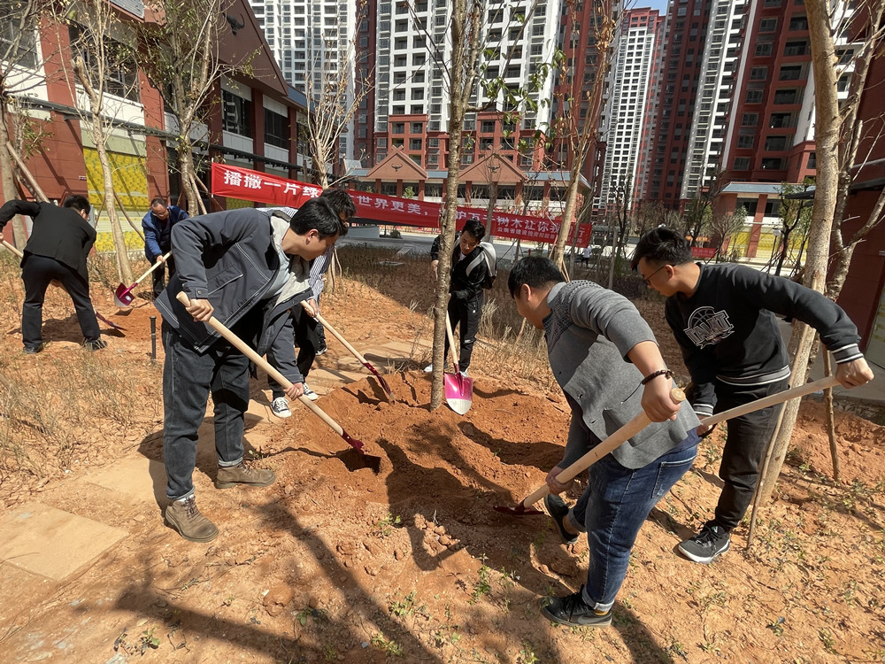 11日下午,由公司與集團(tuán)單位共同開展的“弘揚(yáng)雷鋒精神,創(chuàng)建美好環(huán)境,共建文明家園”植樹活動(dòng)在“恒春花園”項(xiàng)目現(xiàn)場舉行?;顒?dòng)中,大家分工合作,個(gè)個(gè)熱情高漲,不怕累不怕臟,揮鍬鏟土、扶正樹苗、培實(shí)新土、圍堰澆水,并為每一棵樹苗掛上專屬簽名樹牌,植樹現(xiàn)場呈現(xiàn)出一幕幕熱火朝天的景象。經(jīng)過兩小時(shí)的辛勤勞動(dòng),在一株株象征希望的樹苗種下后,小區(qū)呈現(xiàn)出一片勃勃生機(jī)。