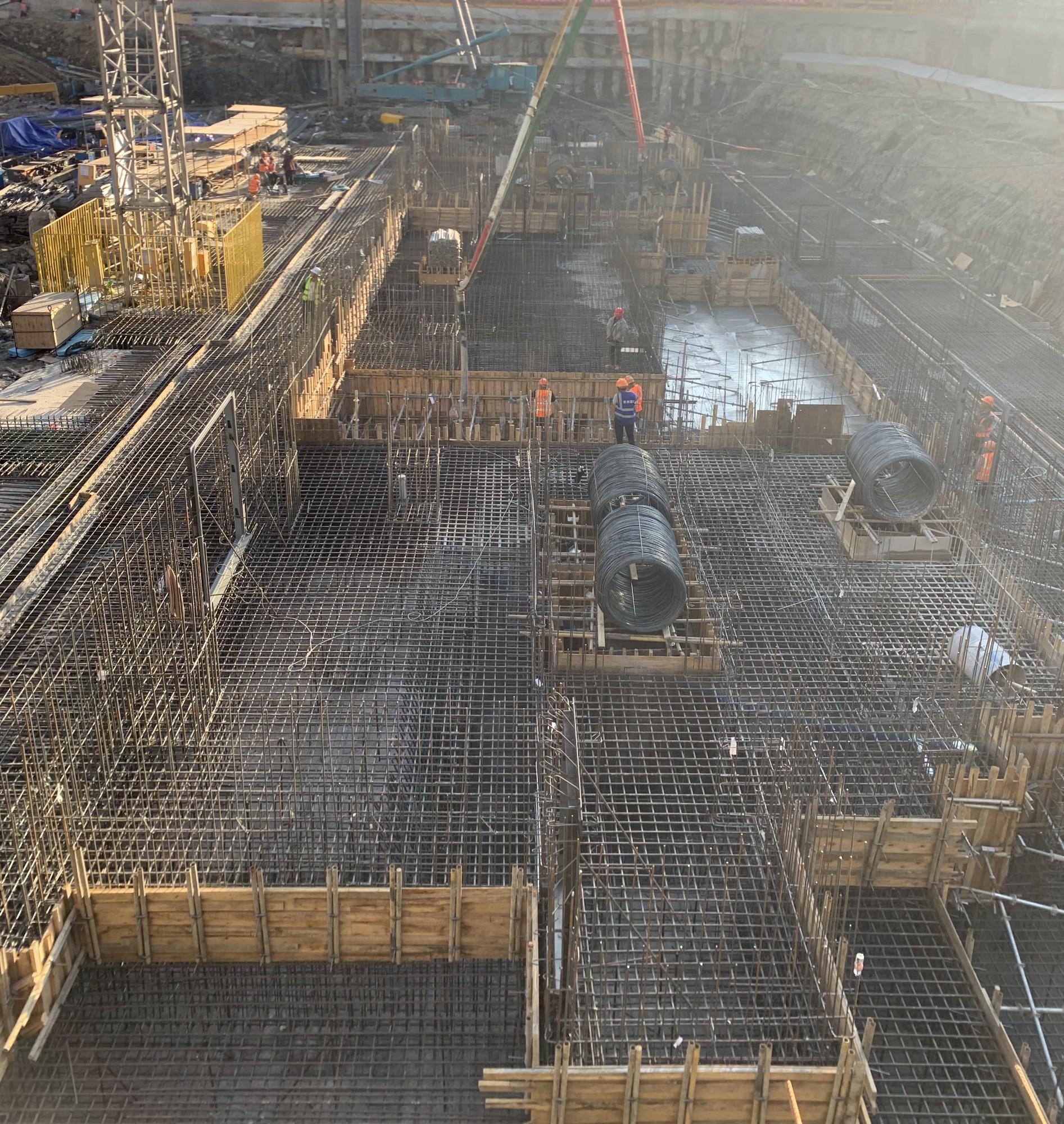 2號(hào)樓作為小區(qū)核心建筑之一,面臨著鋼筋密集綁扎、高強(qiáng)度混凝土大體量澆筑以及施工場地精細(xì)化管理等諸多挑戰(zhàn)。為此,項(xiàng)目團(tuán)隊(duì)精心制定施工方案,多次優(yōu)化工序銜接,持續(xù)加強(qiáng)技術(shù)交底,確保鋼筋綁扎、模板安裝和混凝土澆筑等各環(huán)節(jié)高效有序。在團(tuán)隊(duì)的共同努力之下,項(xiàng)目實(shí)現(xiàn)了施工安全與效率的雙提升,圓滿完成了筏板基礎(chǔ)澆筑節(jié)點(diǎn)。