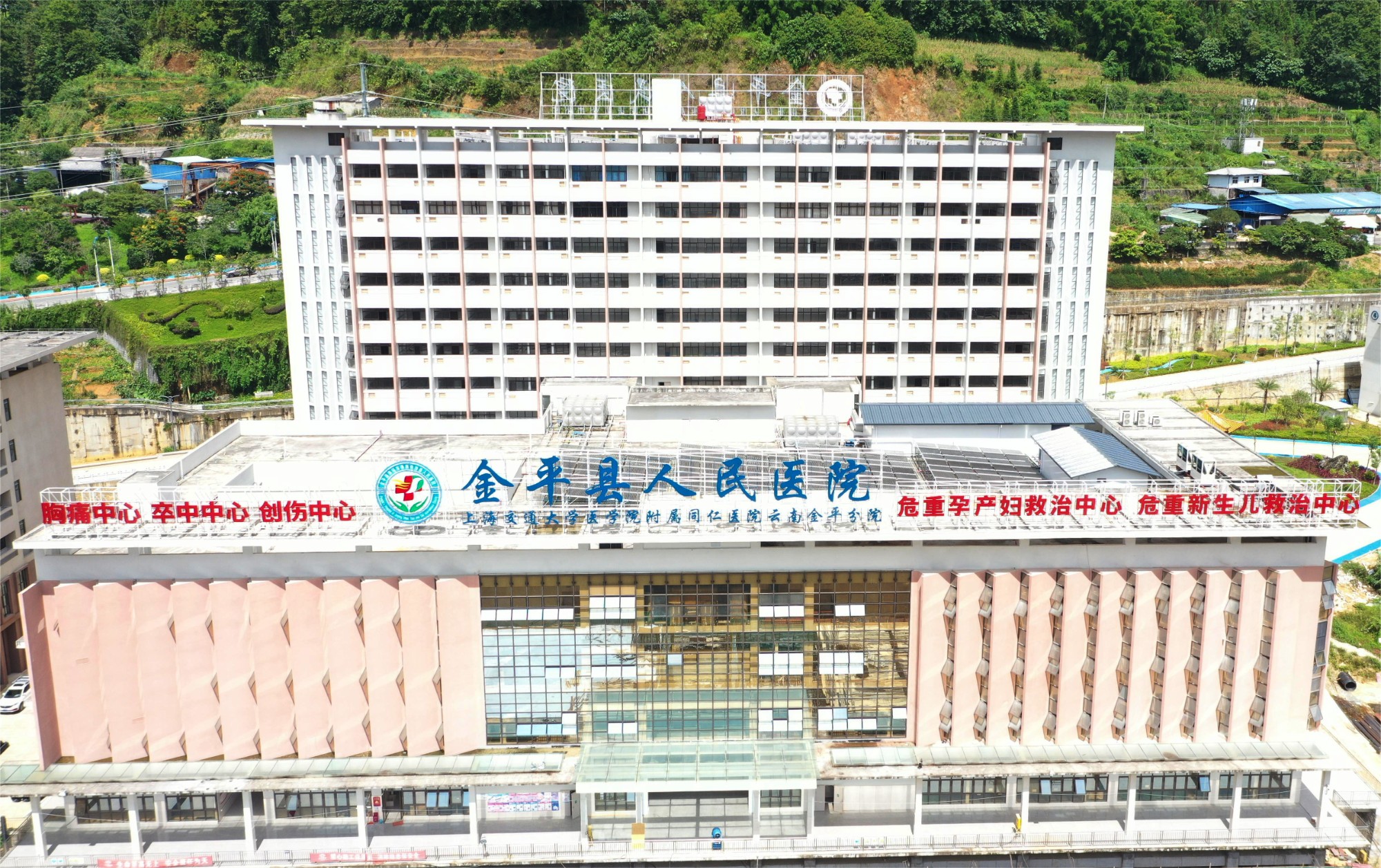 該工程位于金平縣二級路入口處,為民用醫(yī)療建筑,建設(shè)內(nèi)容為:新建門診醫(yī)技綜合樓、住院綜合樓、傳染病綜合樓。總建筑面積:43319.82平方米。其中:地上建筑面積39487.86平方米,地下建筑面積:3831.96平方米;占地面積:6415.21平方米。共有醫(yī)療總床位數(shù):420床,總停車位82個。并配套建設(shè)道路、停車場、圍墻、綠化、照明、擋墻、等室外輔助工程。
