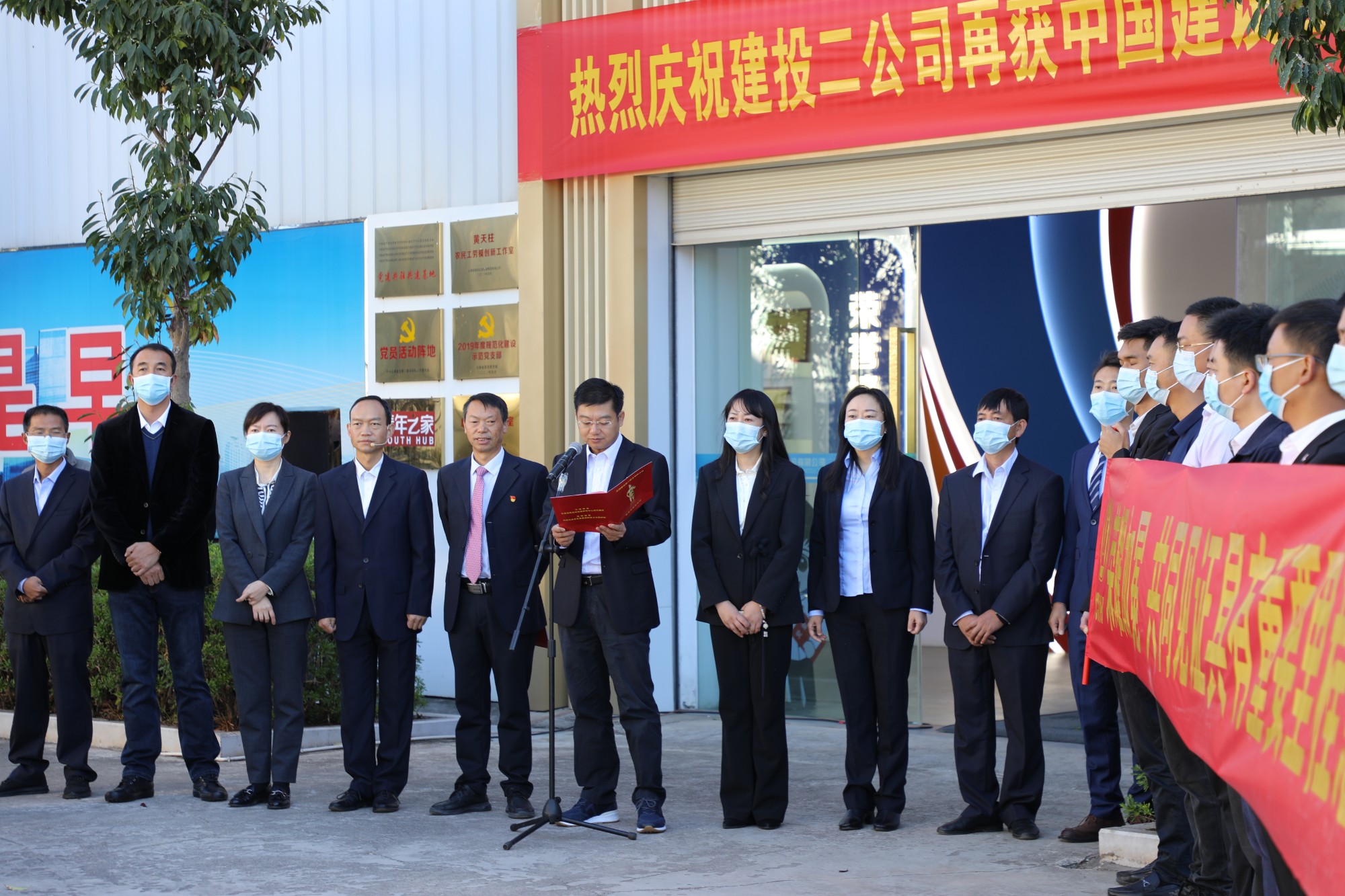參建楚雄政務服務中心項目的第十五直管部和第二安裝分公司班子成員、項目團隊,各職能部門負責人、基層單位負責人參加儀式,共同見證具有重要里程碑意義的光榮時刻。