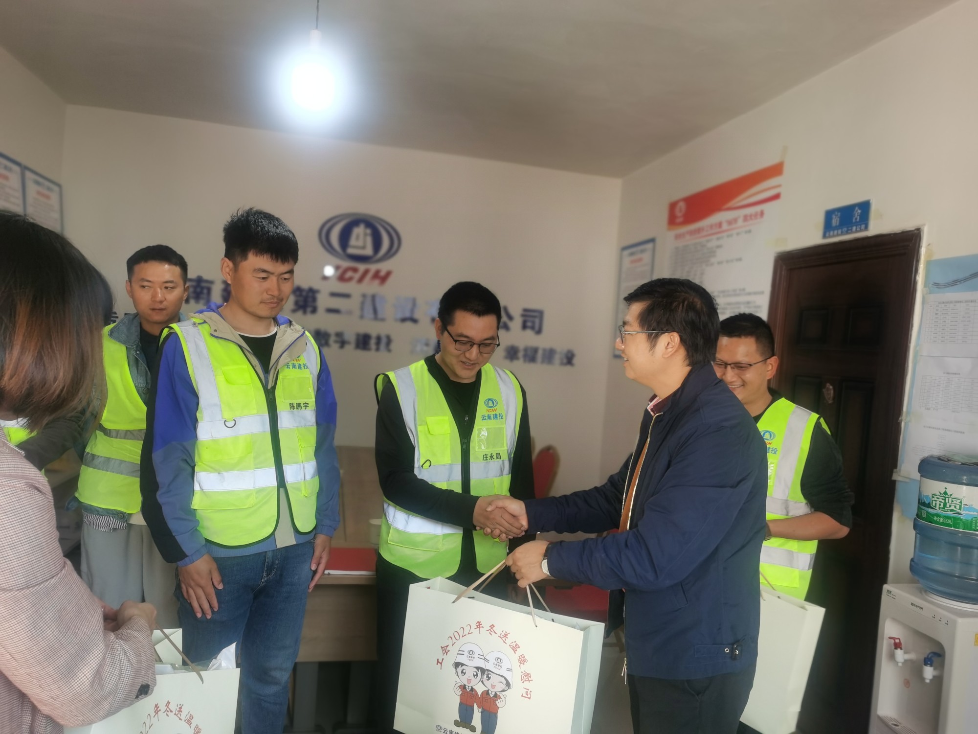 會(huì)后,萬(wàn)向遵與項(xiàng)目一線職工親切交談,并為他們送上公司黨政領(lǐng)導(dǎo)的關(guān)懷及防寒慰問(wèn)品。