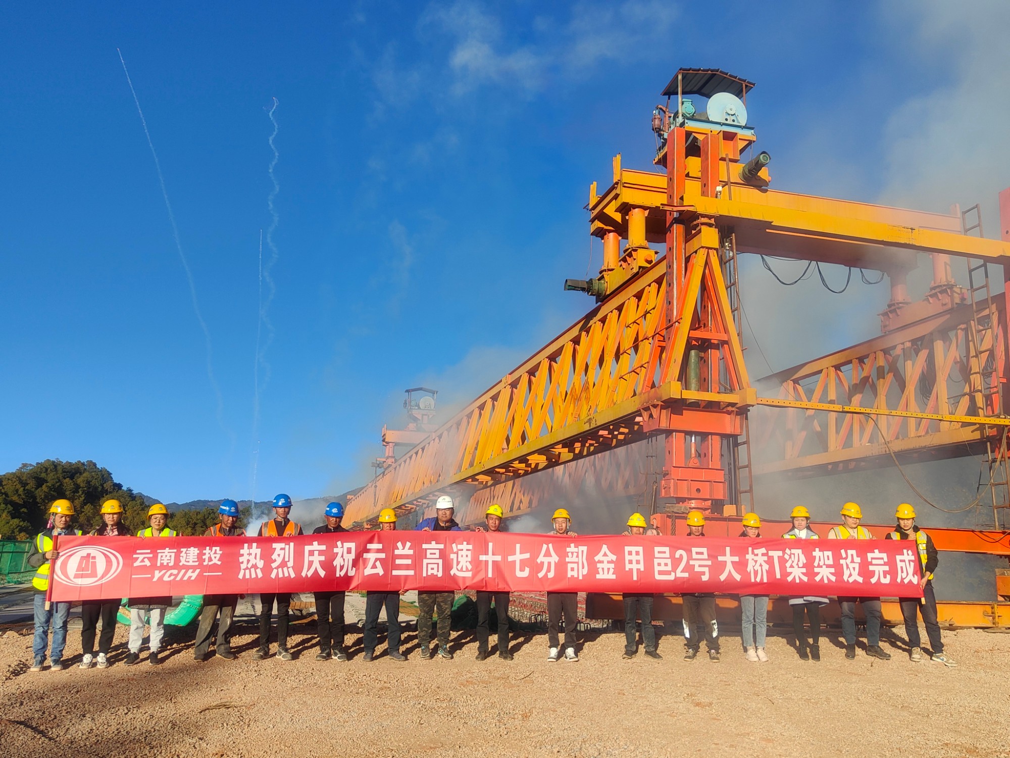 11月22日下午,在清脆悠長(zhǎng)的鞭炮聲中,金甲邑2號(hào)大橋最后一片40米T梁穩(wěn)穩(wěn)落下,由路橋分公司承建的云蘭高速土建十七分部金甲邑2號(hào)大橋40米T梁全部架設(shè)完成,為節(jié)點(diǎn)工期的順利完成奠定了堅(jiān)實(shí)基礎(chǔ)。