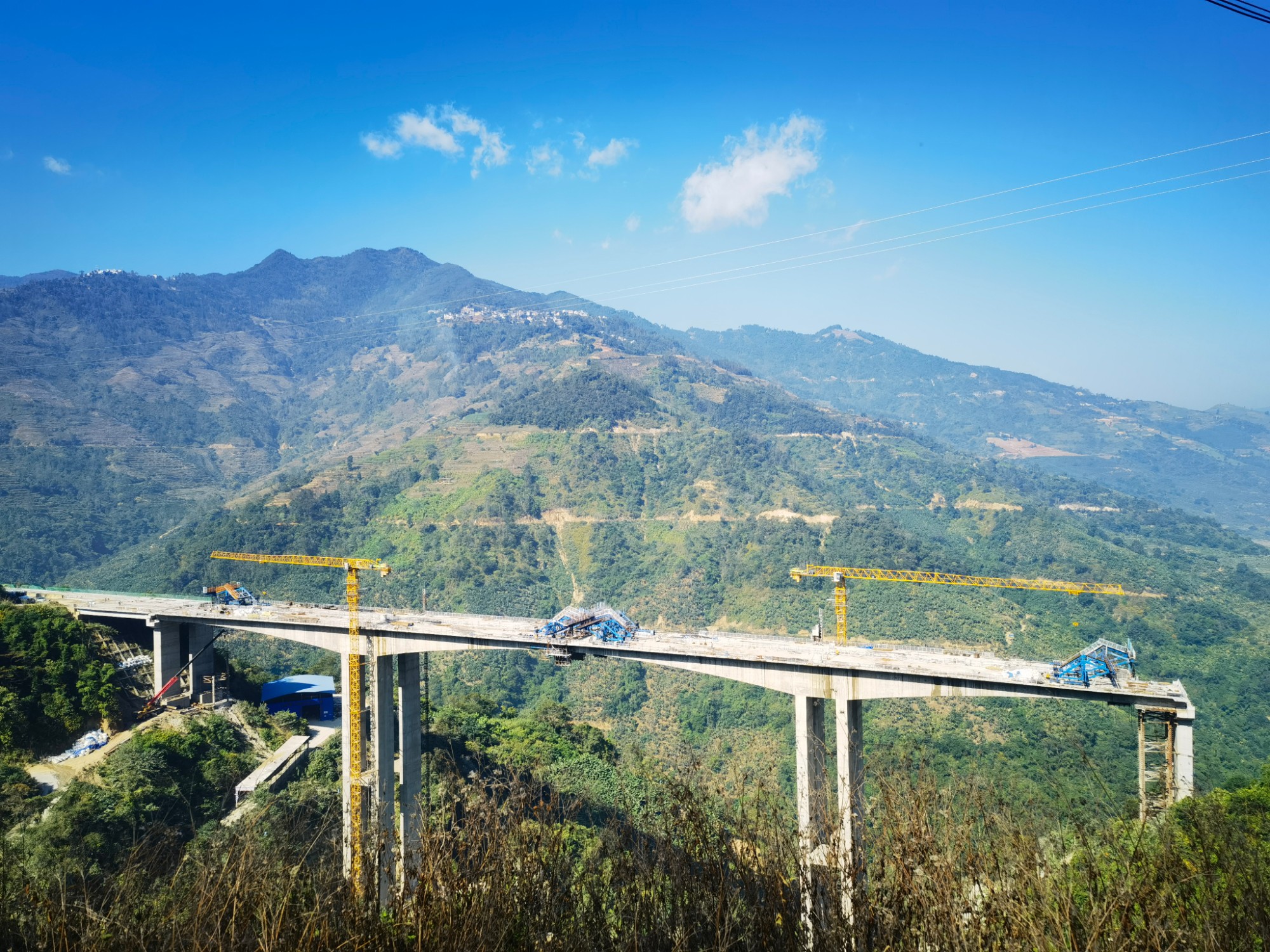 據(jù)悉,小蚌嘎2號大橋全長486米,主橋橋跨組合為(73+130+73)米三向預(yù)應(yīng)力混凝土連續(xù)剛構(gòu),為跨越河谷而設(shè),此次中跨合攏采用頂推及壓重砂袋的方式進(jìn)行施工。目前,大橋85棵樁基、6個承臺、20棵墩柱、10個蓋梁、綠春端引橋T梁架設(shè)及左幅箱梁已全部完成施工。