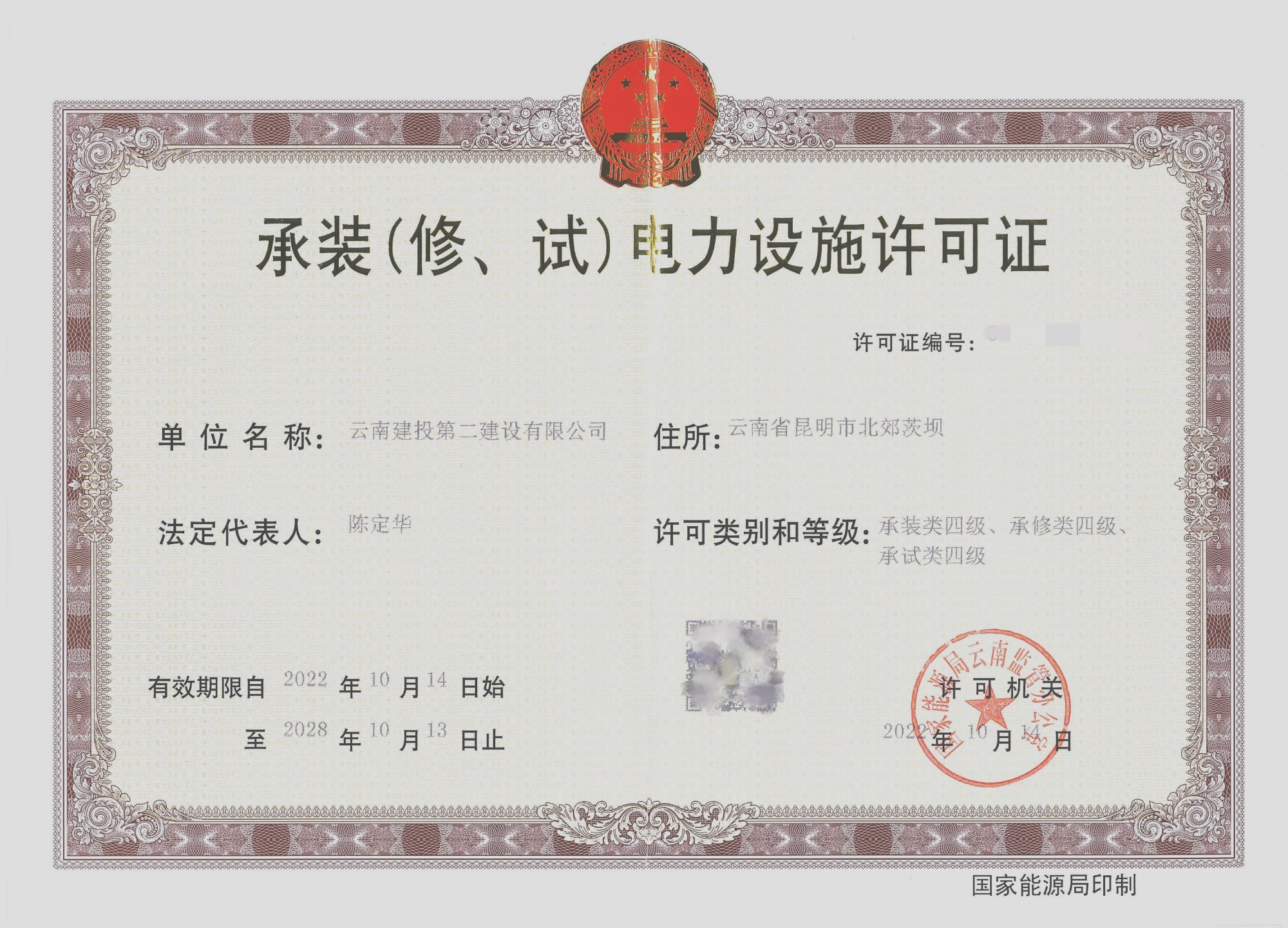 近日,公司成功取得國(guó)家能源局云南監(jiān)管辦公室頒發(fā)的承裝類、承修類、承試類四級(jí)電力設(shè)施許可證,電力專業(yè)水準(zhǔn)獲得行業(yè)權(quán)威認(rèn)可。