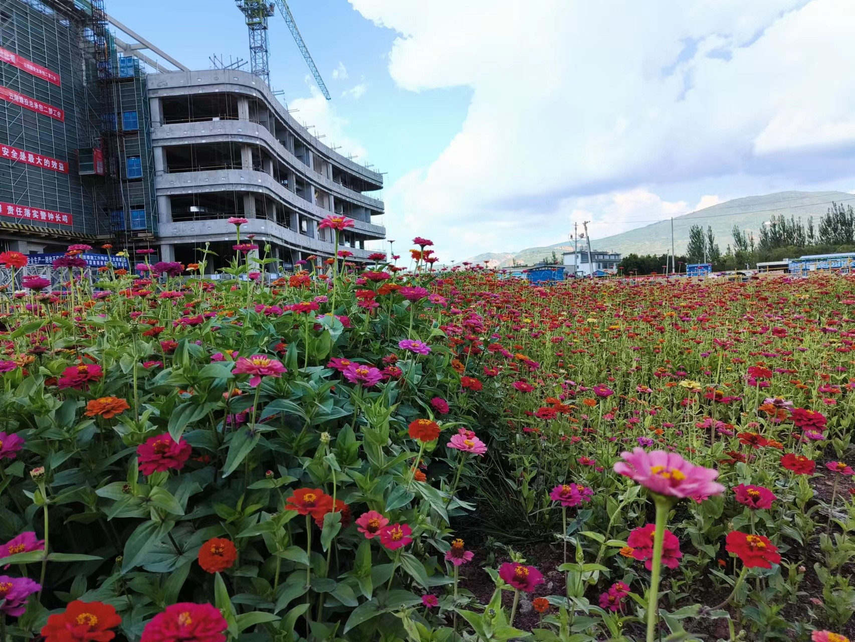 行走在滇西醫(yī)療中心項目施工現(xiàn)場,遍地可見百花爭艷覆蓋著裸露的地面,讓人賞心悅目。據(jù)了解,這是滇西醫(yī)療中心一期項目文明施工、揚(yáng)塵治理工作的一項新探索。應(yīng)用種花抑塵新模式,將環(huán)境綠化升級為環(huán)境美化,折射著項目創(chuàng)建施工示范工地的決心。