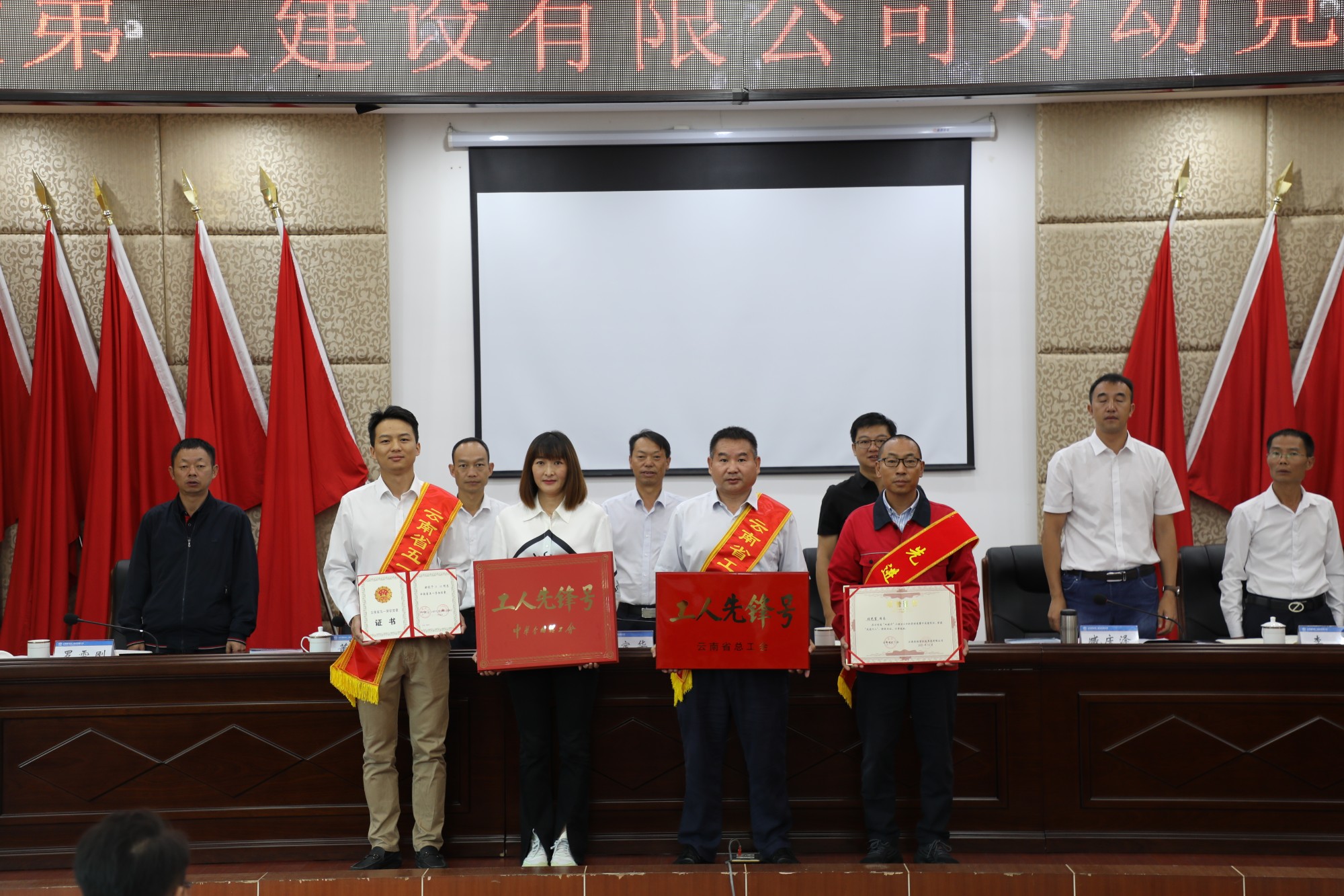 會(huì)上,臧慶澤宣讀了公司獲得全國(guó)、云南省“五一”勞動(dòng)獎(jiǎng)?wù)潞凸と讼蠕h號(hào)的先進(jìn)單位和個(gè)人的文件,公司相關(guān)領(lǐng)導(dǎo)為獲獎(jiǎng)單位及個(gè)人進(jìn)行了頒獎(jiǎng)。