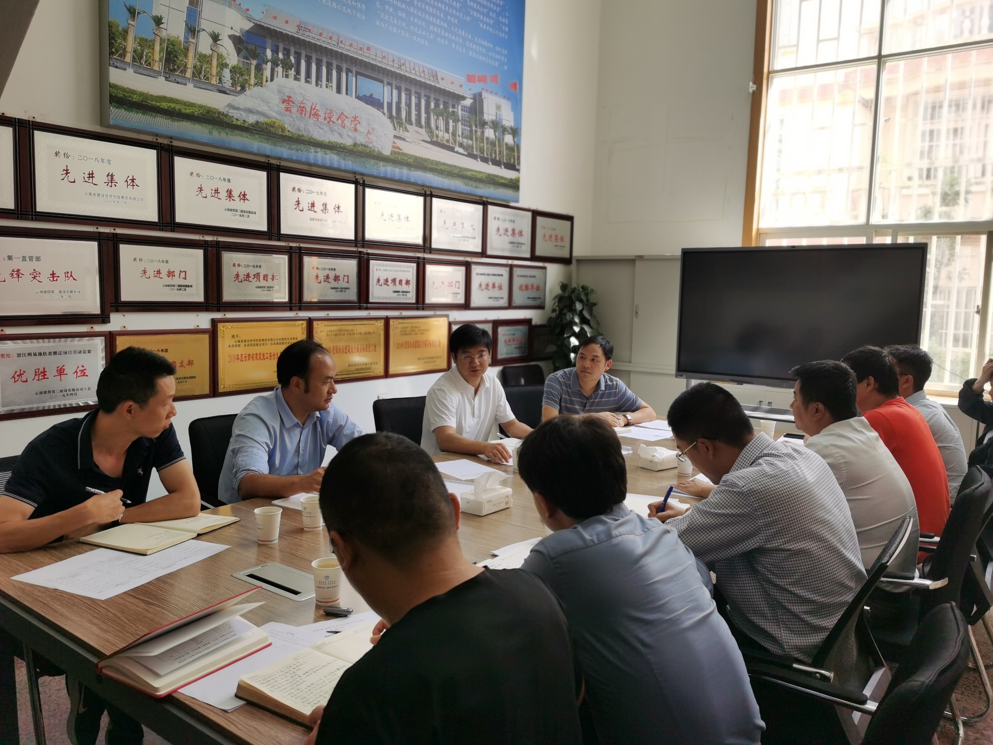 會上,第一直管部和國際工程部負(fù)責(zé)人分別匯報(bào)了上半年經(jīng)營狀況及跟蹤項(xiàng)目落實(shí)情況。