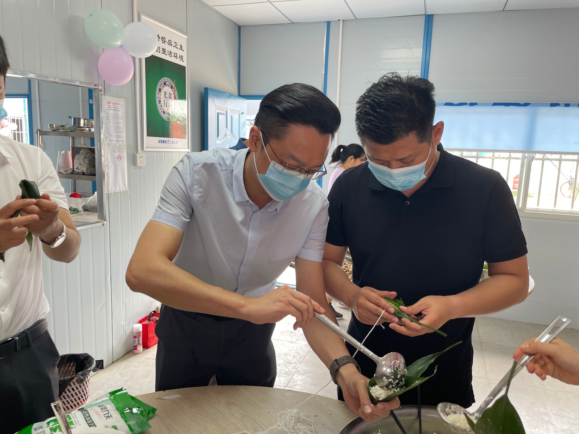 6月3日,正值一年一度的端午節(jié),公司黨委委員、工會(huì)主席胡云紅,副總經(jīng)理、第二直管部經(jīng)理牟其鴻帶領(lǐng)公司工會(huì)辦公室成員,在高原特色物流園一期14#倉(cāng)庫(kù)項(xiàng)目,同節(jié)日期間堅(jiān)守在項(xiàng)目一線職工、產(chǎn)業(yè)工人一同歡慶中國(guó)傳統(tǒng)佳節(jié)“端午節(jié)”。大家聚在一起包粽子、包餃子、做包子,以此弘揚(yáng)傳統(tǒng)文化,傳承民族精神,第二直管部相關(guān)負(fù)責(zé)人陪同。