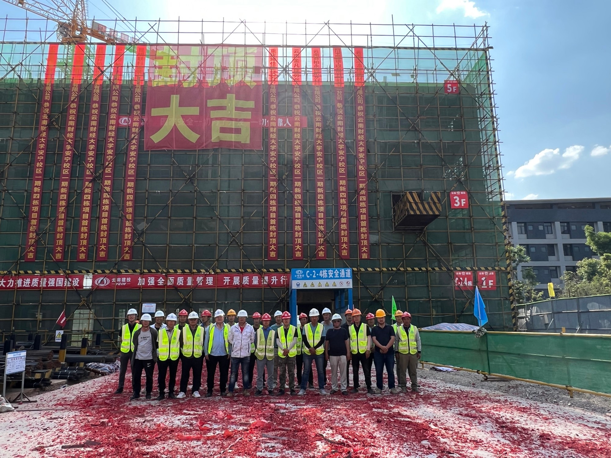4月29日,伴隨著最后一方混凝土澆筑完成,項(xiàng)目施工現(xiàn)場(chǎng)響起一連串歡快的鞭炮聲,由公司第十一直管部承建的云南財(cái)經(jīng)大學(xué)安寧校區(qū)“新四棟”項(xiàng)目首棟主體結(jié)構(gòu)封頂。至此,項(xiàng)目取得階段性成果。
