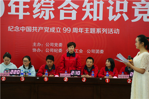 為紀(jì)念中國共產(chǎn)黨成立99周年,進(jìn)一步貫徹黨的十九大精神,集團(tuán)公司職代會精神,大力營造“比、學(xué)、趕、超”的良好氣氛,加強廣大職工對黨紀(jì)黨規(guī)及企業(yè)相關(guān)規(guī)章制度等內(nèi)容的了解,提升綜合水平。11月19日,由公司黨委主辦,公司紀(jì)委、工會、團(tuán)委協(xié)辦的2020年綜合知識競賽在一樓會議室開展,公司黨委書記、副董事長萬向遵,副總經(jīng)理陳本員,總工程師付雋蒼出席活動,公司相關(guān)職能部門負(fù)責(zé)人擔(dān)任評委。