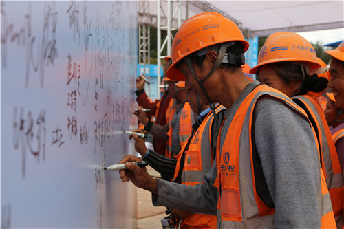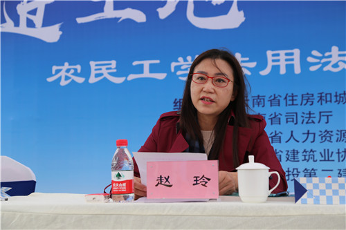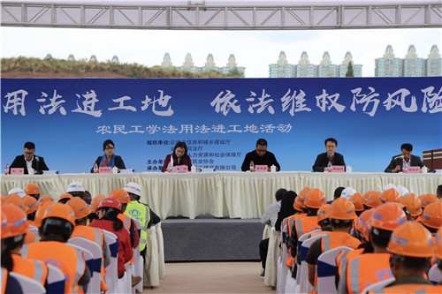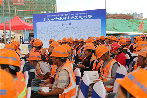 如何保護農(nóng)民工合法權(quán)益、幫助農(nóng)民工合法維權(quán)?農(nóng)民工作為促進經(jīng)濟社會發(fā)展的一支重要力量,加強農(nóng)民工學(xué)法用法工作受到了國家的高度重視。11月11日下午,由省住房和城鄉(xiāng)建設(shè)廳、省司法廳、省人社廳組織,云南省建筑業(yè)協(xié)會主辦、公司承辦的“學(xué)法用法進工地,依法維權(quán)防風(fēng)險”農(nóng)民工學(xué)法用法進工地活動在公司云南財經(jīng)大學(xué)安寧校區(qū)項目舉辦。省住房和城鄉(xiāng)建設(shè)廳建筑市場監(jiān)管處處長吳志勇、省人社廳勞動保障監(jiān)察局局長何亞寧、省司法廳《法治與社會》總編輯趙玲、省建筑業(yè)協(xié)會會長吳明燕、公司董事長陳定華出席活動。