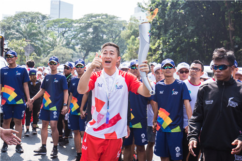 在當(dāng)?shù)孛癖姾椭驹刚邭g呼聲中,手擎銀色火炬單腿緩步“跑”完50米火炬?zhèn)鬟f距離的駱祥健說(shuō),“雅加達(dá)當(dāng)?shù)厝硕挤浅崆?,這也是我第一次當(dāng)火炬手,第一次親身參與亞運(yùn)會(huì),舉起火炬的那一刻,心里只升騰起一種神圣的使命感,只感覺(jué)得到無(wú)比的自豪和激動(dòng)人心?!?出生在文山州麻栗坡縣的駱祥健,5歲時(shí)失去右腿,6歲開(kāi)始練習(xí)用雙拐行走,16歲作為文山州代表參加云南省殘運(yùn)會(huì)并獲得田徑項(xiàng)目?jī)蓧K銅牌,20歲在云南省第十屆殘疾人運(yùn)動(dòng)會(huì)上獲F42跳遠(yuǎn)比賽冠軍,F(xiàn)42級(jí)跳高比賽冠軍。在大學(xué)里,駱祥健獲得的“優(yōu)秀團(tuán)干部”“三好學(xué)生”“大學(xué)生年度人物”“云南省最美大學(xué)生自強(qiáng)之星”“榜樣少年”等榮譽(yù)不勝枚舉。中央電視臺(tái)欄目組、香港文匯報(bào)、云南春城晚報(bào)、文山州日?qǐng)?bào)等媒體都曾對(duì)他自強(qiáng)不息的事跡進(jìn)行過(guò)報(bào)道。