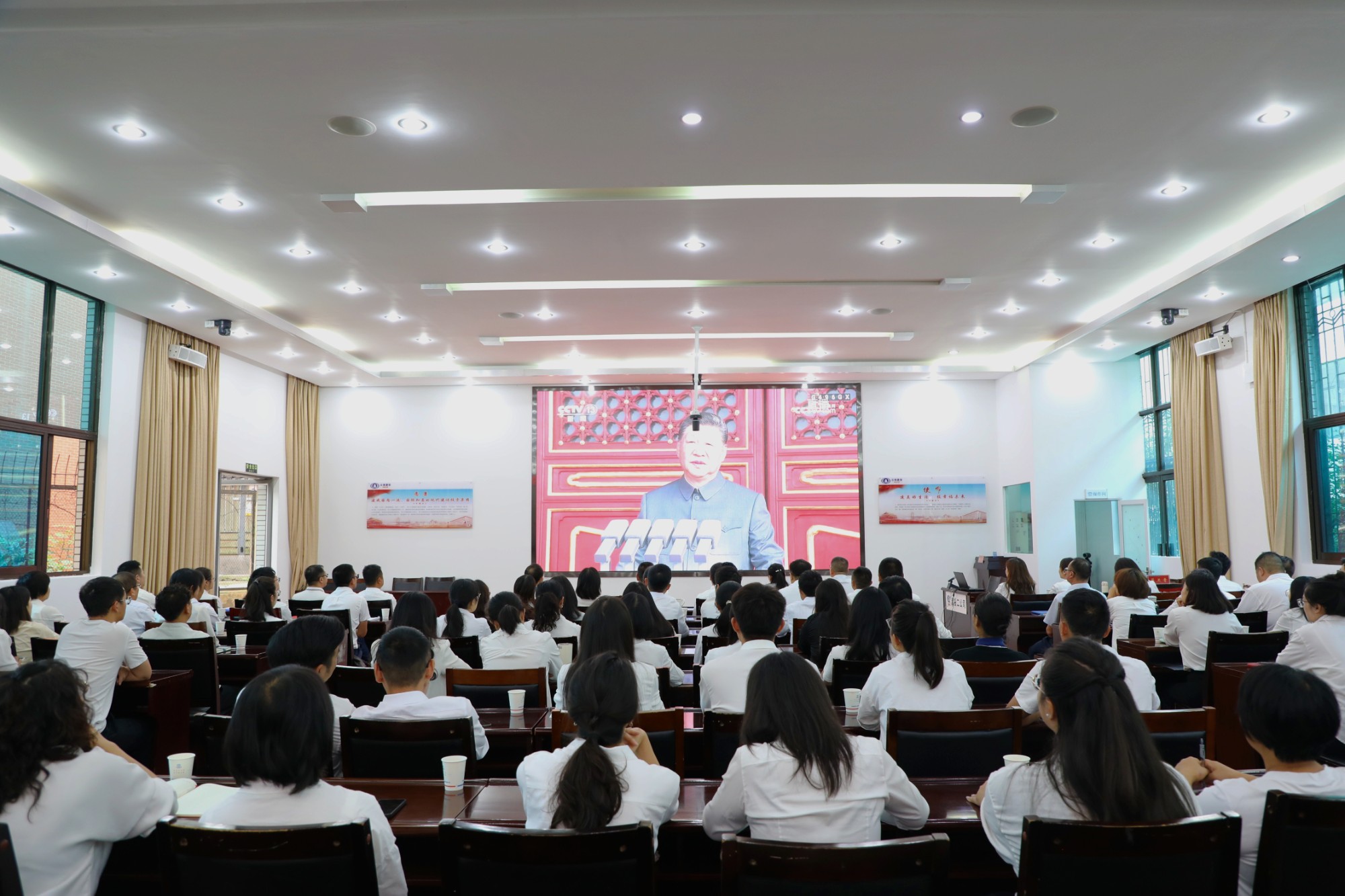公司本部全體干部職工在一樓會議室集中收看,臨滄公司、西北區(qū)域總部以及22個基層單位、101個在建項目分別在辦公室、項目部收看直播,覆蓋公司1400余名干部職工。